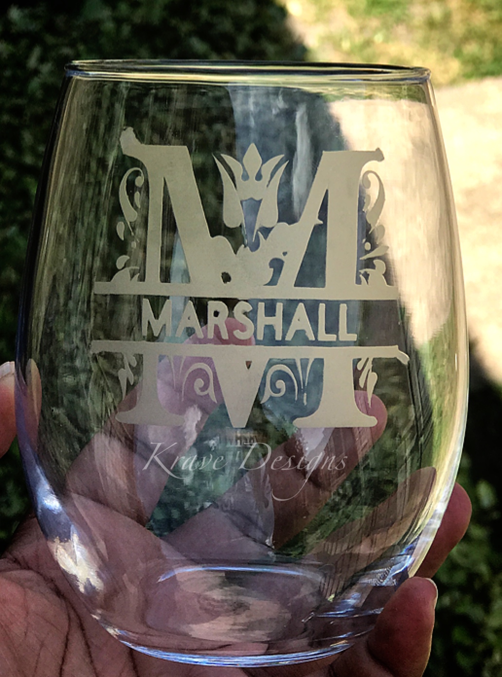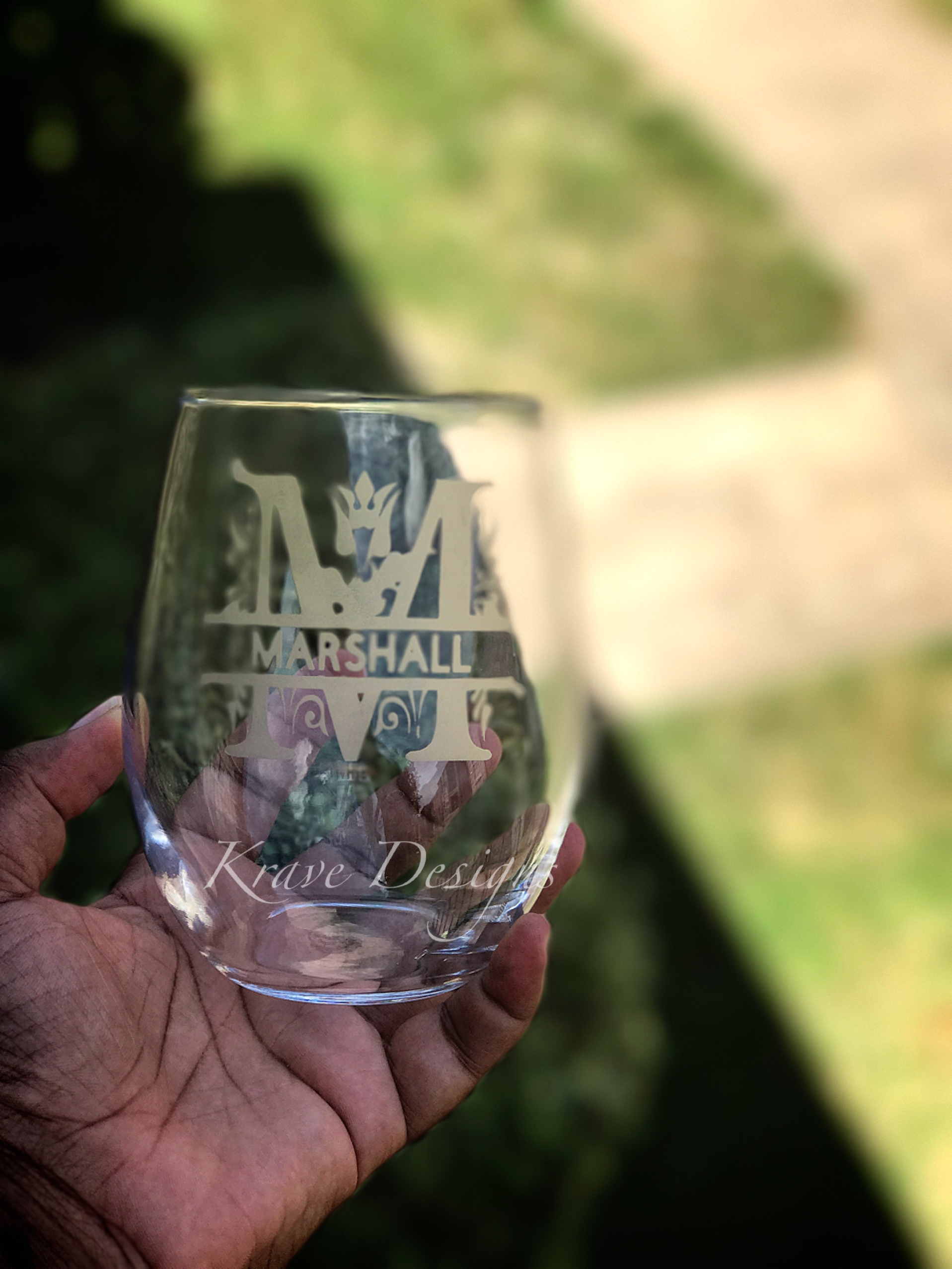 Monogram Etched Stemless Wine Glass