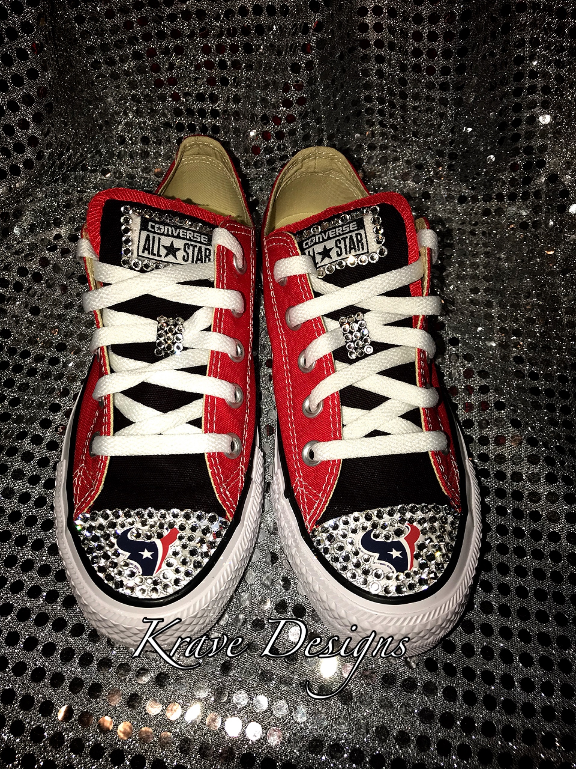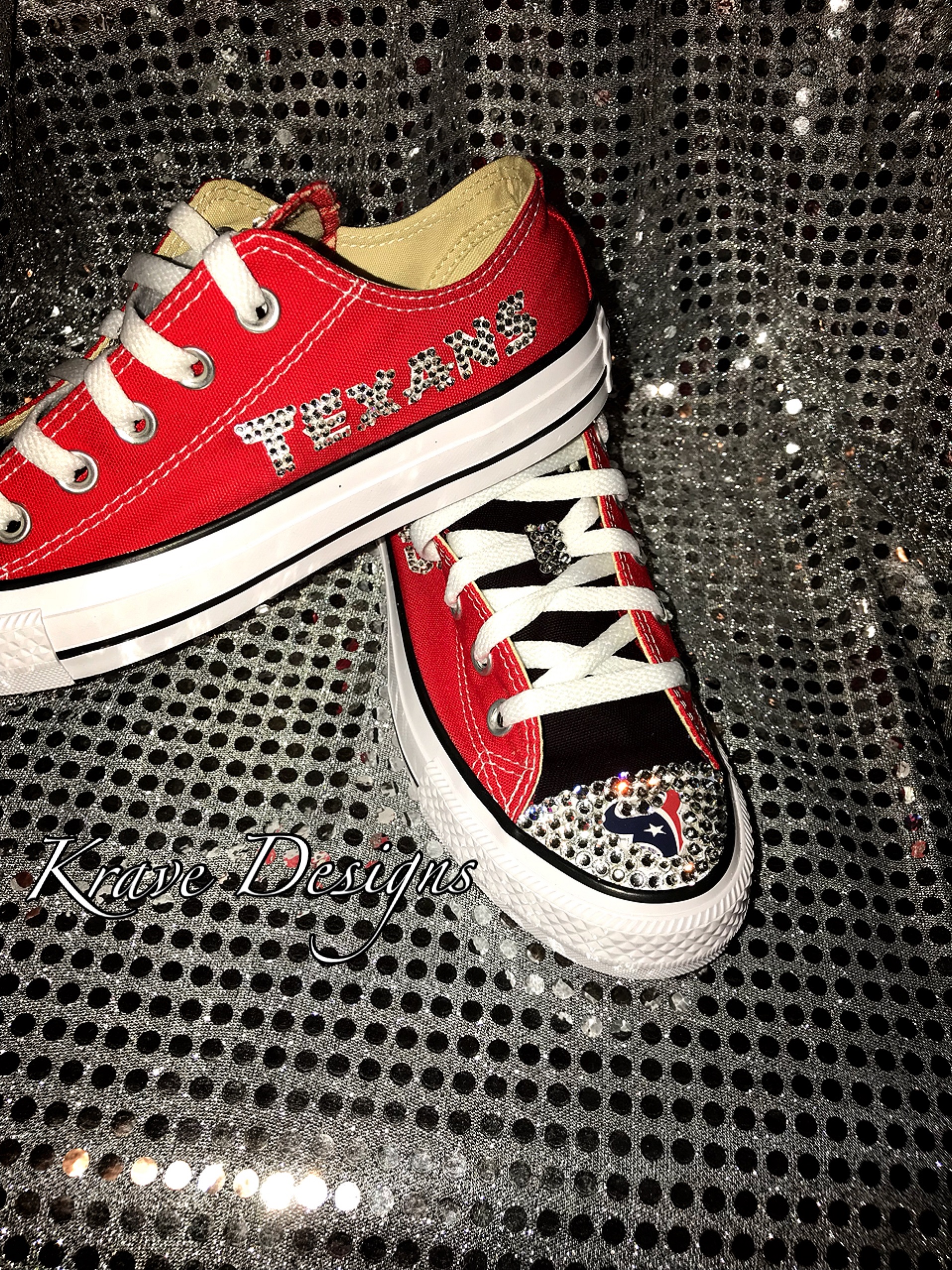 Adult Bling Chuck Taylor Lo-Top Houston Texans Shoes, Bling Shoes, Rhinestone Chuck Taylor, Birthday Shoes, Wedding Shoes, Wedding Converse
