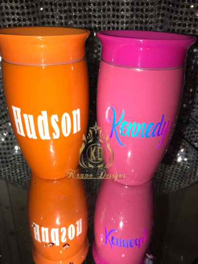 Pictured is 10 oz Munchkin Stainless Steel Sippy Cup. Made to order with image on the front and child's name on the back.